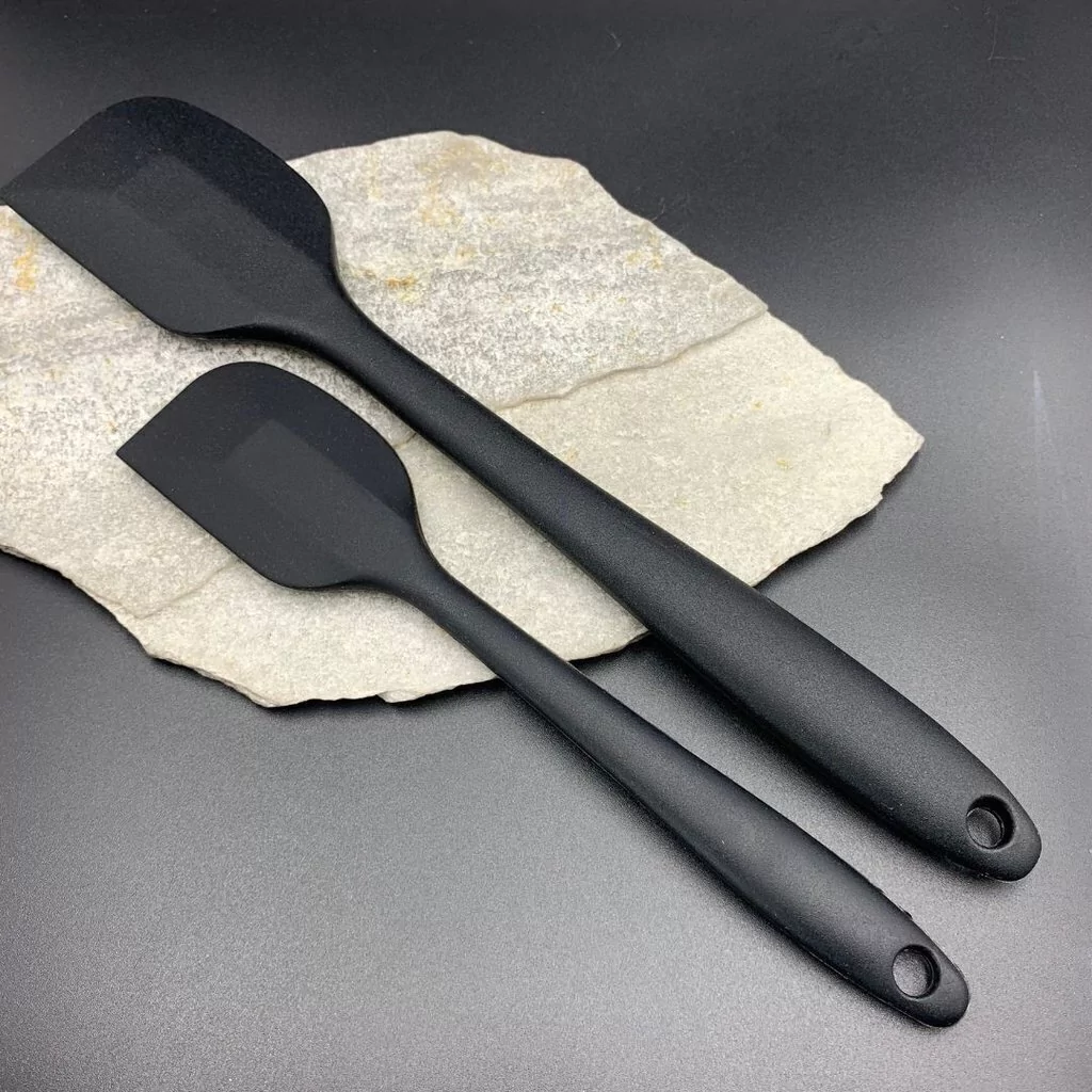 Apresentamos o kit essencial para sua cozinha: duas espátulas de silicone preto de alta qualidade. Fabricadas em silicone durável, estas espátulas são versáteis, resistentes ao calor e fáceis de limpar.